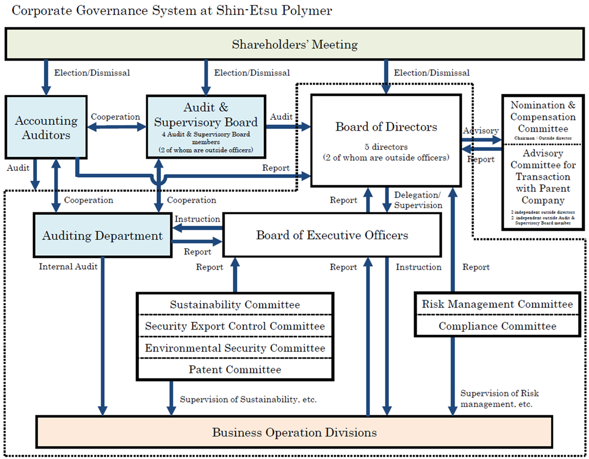 Recognizing this, Shin-Etsu Polymer will take steps to improve corporate governance such as speeding up management decision making, ensuring management transparency and strengthening internal controls, thereby improving accuracy in decision making and execution.