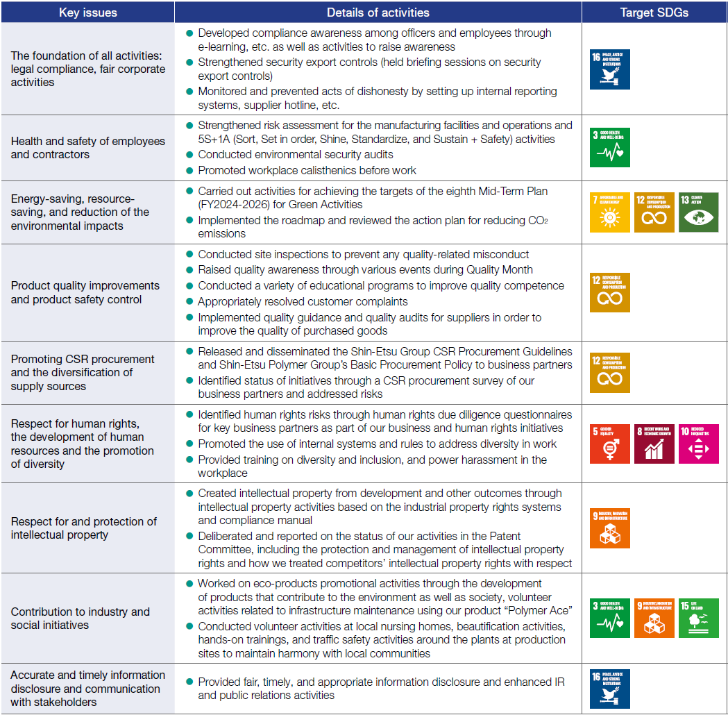 Based on international issues such as the SDGs, social demands, and the business environment surrounding the Group, we identified nine key sustainability issues by evaluating and summarizing the importance and impact of perspectives of the Group and the stakeholders.
