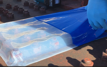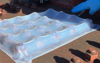 2.施工面をよく清掃したら、真空引きチューブを敷き、その上からポリマエースを位置合わせする。
