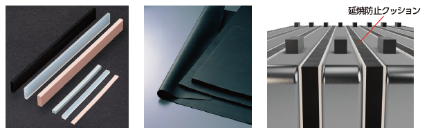 ●断熱材と組み合わせてEV用バッテリーのセル間延焼防止クッション |