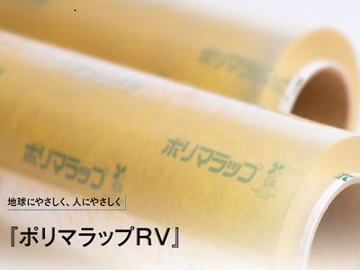 ラッピングフィルム『ポリマラップ』シリーズでは、業務用に特化した塩化ビニル樹脂製ラップで多彩なラインアップをそろえています。この中でも、環境に配慮し、バイオマス原材料を配合(「バイオマス10」取得)した『ポリマラップRV』の製品秘話をご紹介します。