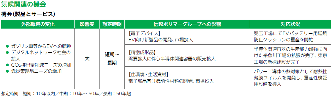 より対処します。また、製品とサービスにおける機会としてはガソリン車等からEVへの転換やデジタルネットワーク社