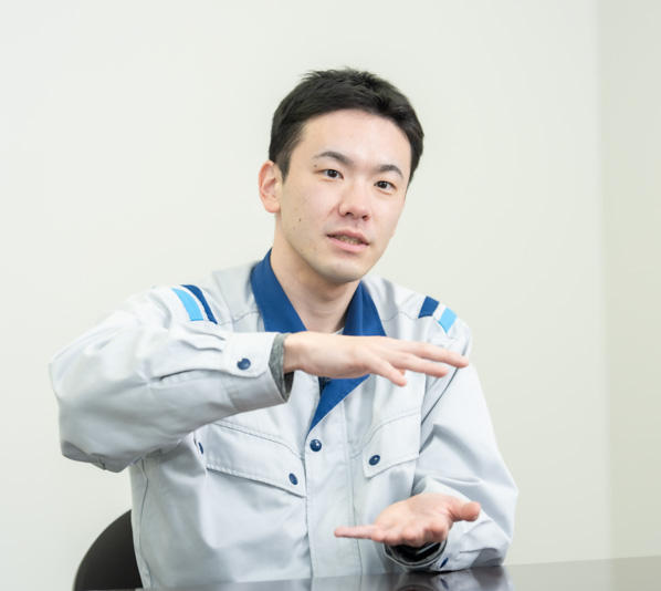 入社1年目のとき、大きな生産ラインの導入プロジェクトの中で、比較的小さな装置の設計を任せてもらいました。先輩に見ていただきながらではありましたが、自分がメインの担当としてやらせてもらえたのは大きかったです。当時はわからないことばかりでしたが、先輩に何でも聞ける環境がありました。先輩の考え方を吸収していくうちに、自分から提案できるようになっていきました。提案がしやすい雰囲気を作ってくれる方が多く、上司に意見を伝えやすい職場です。